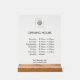 Affichez vos heures de magasin avec style grâce à cette enseigne acrylique moderne avec votre logo d'entreprise personnalisé. Parfait pour les restaurants, cafés, salons, boutiques ou bureaux, ce design élégant et professionnel rend vos horaires d'ouverture clairs et accueillants. Personnalisez avec votre logo et les détails pour créer une signalisation polie. Durable et facile à afficher, ce panneau acrylique est idéal pour l'utilisation quotidienne de vitrine et de marque professionnelle.