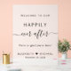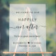Chic panneau en acrylique dépoli avec "Welcome To Our Happily Ever After" en typographie moderne simple et un script élégant avec des swashes, "nous sommes tellement heureux que vous soyez ici", vos prénoms rejoints par un coeur et votre date mariage.
