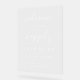 Mariage acrylique clair chic signe de bienvenue qui présente "Bienvenue à notre heureux après" dans un mélange de typographie blanche simple et un élégant script blanc avec des swashes, "Nous sommes tellement heureux que vous êtes ici", et vos noms et mariage date dans la typographie classique serif blanche.