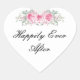 Happily Ever After Heart Sticker, est montré avec un joli bouquet rose rose floral. Customisez cet objet ou achetez tel quel. Impression stock