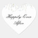 Happily Ever After Heart Sticker, est montré avec un joli imprimé de fleurs sauvages bleues. Customisez cet objet ou achetez tel quel. Impression stock