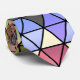 The perfect finishing touch for this spring & summer is this necktie featuring an original digital painting in warm & pleasing shades of a rainbow applied to a classic quilt pattern made of triangular pieces where the arrangement of colours & shading creates the ever-changing illusion of 3-D blocks, multi-coloured hexagons & 6-pointed stars.