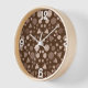 Upgrade your home decor with our stylish round wall clock, featuring a sophisticated geometric design. This clock showcases an intricate pattern of hexagons and triangles in shades of pink and brown against a rich brown background, adding a modern touch to any room. Perfect for living rooms, kitchens, or offices, it combines functionality with aesthetic appeal. Crafted with a high-quality, durable frame and a precise quartz movement mechanism, this wall clock ensures accurate timekeeping while enhancing your space with its unique design. Impress your guests with this elegant and practical accessory that seamlessly blends contemporary design with superior quality.