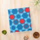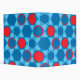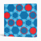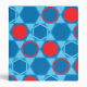 This mousepad is decorated with a hexagon and star pattern in blues and red.