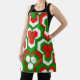 This apron has a Christmas geometric design of hexagons in sets of three that look like flowers in red, white, and green.