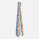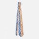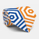 Un cravate unique et amusant avec un motif hexagone bleu, orange et blanc.