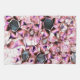 Hexagons surrounded by pinkish petal-like shapes kitchen towel