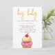 A Ice cream sundae sits at the bottom of this adorable invitation. This invite features "Hey Baby" in large orange script with your shower information below in black print on a round edged invitation. The backside is orange. The wording is customizable