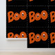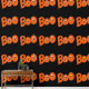 This Halloween and classic one simple word quote retro old school style image design features orange colour lettering with black outline backing, cute barely scaredy boo eyes, periwinkle blue purple dots and black background colour to match on many products.