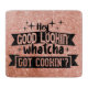 I hope you'll enjoy this black typography writing that says “ hey good lookin’ whatcha got cookin’ ” in faux rose gold glitter.