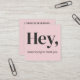 Hey Modern Minimal Bold Typography QR Code Pink Square Business Card