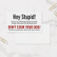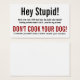 Perfect for the idiots that don't understand the dangers of leaving their beloved family pets in a hot vehicle to slowly suffocate and possibly die from heatstroke. Warn them not to try it again with this bold, angry black and red text business card that you can tuck under a windshield wiper. If an animal is clearly in distress, please immediately contact an animal agency who WILL smash the window.