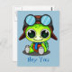 Hey You Cute Cartoon Turtle in Aviator Hat Postcard