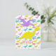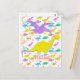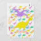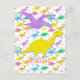 Hi Hello Colour Dinosaurs Cartoon Postcard. A cute little yellow happy cartoon Diplodocus dinosaur with smiling flying purple Pteranodon colour dinosaur patterm (Stegosaurus, T-Rex, Triceratops, Diplodocus & Parasaurolophus) background postcard. This great colour cartoon dinosaurs postcard is fully customizable! Change the text "Congrats!" and add your images & texts! A great "congratulations" or happy birthday dinosaurs card!