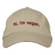 hi, i'm vegan. Simple and humble way of introducing yourself as vegan to others you'd like to know about it. Nice to wear at vegan or animal rights events, walks, potlucks, fundraisers, veg fests and marches. Wear it while you're out walking, biking or shopping too.