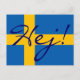Swedish Flag Postcard with the word "Hej!", which is Swedish for "Hi!".