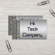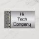 Stainless steel metal look surface smooth chrome in the middle for your name or company name. The background is a hi-tech, futuristic silver with bright green pixels or LED lights. A bold, unique modern business card. Easily customize with your own information. The perfect professional looking card especially for technical fields, computer, gaming, tech repair, and electronic related businesses. More information can be put on the back as well onto the same metal background. A strong business card that stands out from the rest.