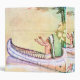 Beautiful antique colour plate book illustration from a 1906 4th year reader textbook depicts the legendary Hiawatha in his magic canoe departing for his home with the Great Spirit after uniting the five tribes and founding the Iroquois Confederacy.