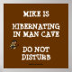 Hibernating in Man Cave Do Not Disturb with caveman graphic. Change "Mike" to YOUR NAME to personalize! Change colours, fonts, etc. Easy templates!