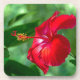 In this stunning image, a red hibiscus flower is highlighted against a mottled green background.
