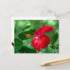 In this stunning image, a red hibiscus flower is highlighted against a mottled green background.