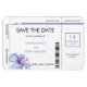 Purple Hibiscus Save the Date magnets with boarding pass design for your tropical or destination wedding. Easy to use template - just enter the names of the Bride & Groom, along with the wedding date in the space provided.