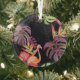 Hibiscus, Flamingos, Watercolor Tropical Pattern. Glass Ornament