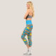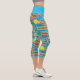 Tropical Hibiscus Flower on Blue Hawaiian Beach Capri Leggings. Cool aqua blue leggings printed with a summer pattern of Hawaiian beach names, and yellow hibiscus flowers. Tropical palm leaves finish the pattern, giving a cool beach vibe. The waistband is coloured in a complementary aqua blue colour.