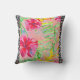 Black and White Striped Coral Hibiscus Flower Reversible Tropical Throw Pillow