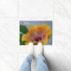 A Doormat for the front of your house, with a photograph of a yellow Hibiscus flower and the word Welcome.
