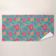 Des fleurs colorées d'hibiscus fleuris en rose et orange avec des feuilles verts, motif d'inspiration hawaïenne sur un arrière - plan bleu.