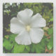 Close up of a white Hibiscus flower with a fully developed pistil following rainfall