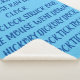 Large sky blue sherpa blanket written in deep blue (hickory dickory dock)