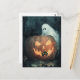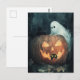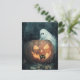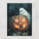A fun Halloween scene with a ghost and a black cat searching for another black cat hidden inside a Jack o lantern pumpkin