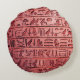 Un coussin rond rouge avec des hiéroglyphes anciens gravés sur pierre. Décor d'Halloween ! Aussi disponible en d'autres couleurs et formats!
