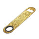 Un ouvre-bouteille jaune avec d'anciens hiéroglyphes gravés sur pierre.
