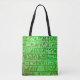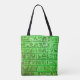 Un ancien Hiéroglyphes égyptien Sac fourre-tout vert avec des hiéroglyphes anciens gravés sur pierre en vert. Également disponible en violet, bleu, rouge et jaune.