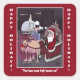 Stickers with a funny cartoon about Santa and Rudolph the red-nosed reindeer. The image, background and text can be customized. Original artwork by DBcartoons.