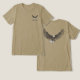 Text on front reads "High Flyer" small pocket eagle art on front and large eagle in flight about to pounce on the back of the shirt. © Drawn with fine black pen overlayed with a little flat colour by Sarah Trett. www.sarahtrett.com for www.mylittleeden.com hosted by zazzle