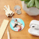vintage cowgirl pin-up image with coordinating sky blue background. Customize with any text you want!