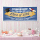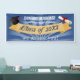 This bold text design has a template to input the name of your high school or college and class year. The blue background contrasts well with the yellow banner and bright white text for an easy-to-read banner. Text reads 'Congratulations! High School Name Class of 20XX we salute you!'