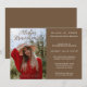 High School Photo Graduation Party Invitation. Invite is brown and white with a color photo. Join us to celebrate (your graduate's name) graduation with a backyard (BBQ) barbeque bash! Don't forget your swimsuit for some poolside fun. Celebration date, time, location and RSVP contact can all be customized to your own party details. Let's make a splash and celebrate together!