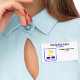 High school reunions can be large events so it helps to have name tags for attendees. This blue and yellow template allows you to replace the graduation art with your school logo. A square image will work best. Personalize the text fields, remove any text or click customize to select a typeface colour, size, and style your prefer. The tag allows room for the attendee's name on the bottom right.