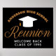 A classic custom class reunion party welcome poster for alumnus in black and gold typography for a high school, college, or university. Customize with your school name and graduating class for great personalized alumni celebration decor.