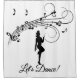 Flowing bars of music above a tap dancer and Let's Dance