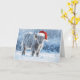 Happy Holidays in a cute way with this darling highland calf or steer in the snow. He looks directly at the recipient, with his St. Nick hat.
