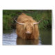 Vaches Highland prenant un bain dans la rivière Wey, Guildford, Angleterre.