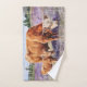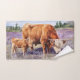 Une représentation sereine d'une vache et d'un veau des Highlands debout au milieu d'un champ de fleurs sauvages violets vibrants. Les tonalités douces et terreuses des vaches contrastent magnifiquement avec les accents floraux vifs, créant une célébration harmonieuse et rustique de la nature et de la famille.