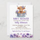 Adorable baby highland cow in a tub of water and flowers. Baby is sticking tongue out; so freakin' cute! Customize with your party's info and details.