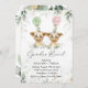 Boy or Girl? This botanical eucalyptus design features adorable watercolor highland cows with sage green and pink balloons. With hints of gold glitter and botanical gold leaves, this invite will surely wow your guests! Please note: This design features high quality graphics made to look like sparkly gold- it is not real foil gold.